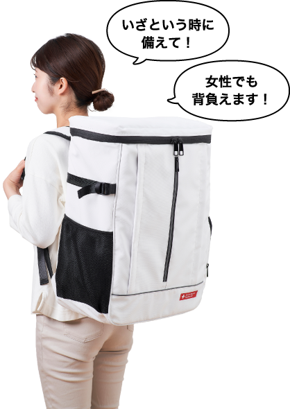 災害時に役立つ用品をセットにした防災リュックです。避難時にすぐに持ち出すべき必要最低限の備えに特化した、最初の1日間をしのぐためのアイテムを揃えました。●外形寸法(幅)[mm]:320●外形寸法(奥)[mm]:160●外形寸法(高)[mm]:430●質量[kg]:2●セット内容:リュックサック、懐中電灯ランタン、ホイッスル、レインポンチョ、EVAサンダル、アルミシート、アルミブランケット、エア枕、ウォータータンク、携帯トイレ 3個入、ポリ袋 3枚、カッター、ルーペ、防水スマホ袋、使い捨て下着、ポーチ、お薬ケース、タオル、歯ブラシ 3本、綿棒 20本、マスク 3枚、ティッシュ、ラバー手袋、圧縮袋、布テープ、2WAYドライバー、紙皿 3枚、プラカップ 5個、割りばし 3膳、スプーン・フォークセット 1セット、ラップ、アルミホイル、筆記用具セット●セット内容は、予告なく同等品に差し替えとなる場合がございます。あらかじめご了承ください。