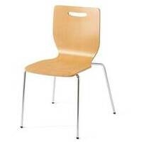 【在庫限りの特別価格】カフェテリアからミーティングまで幅広くお使いいただけます。ヌードタイプ●座面高:430mm●座面幅:400mm●色:ナチュラル●材質:背・座(表面/芯材)=メラミン樹脂化粧板/成形合板、脚=直径15.9mmスチールパイプ(クロームメッキ)、脚端=樹脂成型品●スタッキング可能数:4脚