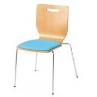 【在庫限りの特別価格】カフェテリアからミーティングまで幅広くお使いいただけます。座クッションタイプ/ライトブルー●座面高:446mm●座面幅:400mm●色(背/座):ナチュラル/ライトブルー●材質:背・座(表面/芯材)=メラミン樹脂化粧板/成形合板、座クッション(張地/芯材)=PVCレザー(抗菌・防汚・耐アルコール・耐次亜塩素酸)/ウレタンフォーム、脚=直径15.9mmスチールパイプ(クロームメッキ)、脚端=樹脂成型品●スタッキング可能数:4脚