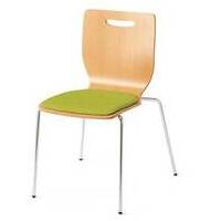 【在庫限りの特別価格】カフェテリアからミーティングまで幅広くお使いいただけます。座クッションタイプ/イエローグリーン●座面高:446mm●座面幅:400mm●色(背/座):ナチュラル/イエローグリーン●材質:背・座(表面/芯材)=メラミン樹脂化粧板/成形合板、座クッション(張地/芯材)=PVCレザー(抗菌・防汚・耐アルコール・耐次亜塩素酸)/ウレタンフォーム、脚=直径15.9mmスチールパイプ(クロームメッキ)、脚端=樹脂成型品●スタッキング可能数:4脚