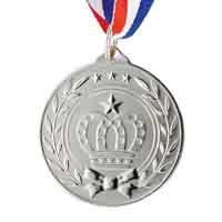 ずっしりと重い重量感がリアル。付属のシールには書き込みができ、裏面に貼り付けられます。●寸法:メダル=直径55mm、紐長さ=400mm、全長=800mm、 ケース=縦280×横280mm×高さ160mm●色:銀●質量:54g(ケース含む)、38g(本体のみ 紐含む)●材質:本体=鉄、リボン=ポリエステル、ケース=PET●製造国:中国