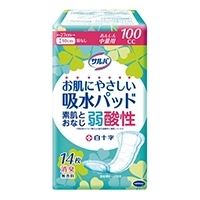 素肌と同じ弱酸性の素材を使用した吸水パッド。●目安吸収量:100mL●パッド寸法(幅)[mm]:100●パッド寸法(長)[mm]:270●種別:中量用●対象:女性用●入数:14枚●ブランド:サルバ