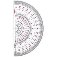 表面のマット加工が反射を防ぎ読み取りが容易です。マット調なので分度器本体に鉛筆等で印が書き込めます。目盛は線や文字が薄くなりにくい箔押し仕様。中心に位置決めしやすいガイド入りです。●規格:全円15cm●仕様:0.5度の目盛付●材質:硬質PVC●製造国:日本