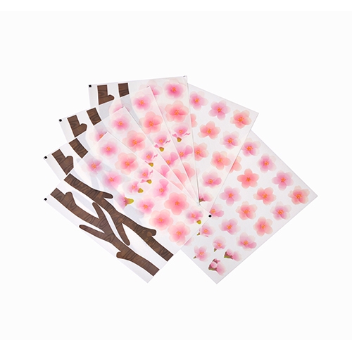 【花びら】■1 枚あたりのサイズ:高さ 33〜45mm 幅 33〜45mm■柄種類:14 柄 ■枚数:102 枚【枝】■1 枚あたりのサイズ:高さ 287mm 幅 61〜62mm■柄種類:2 柄 ■枚数:8 枚■包装サイズ:高さ 333mm× 幅 225mm× 厚さ 2mm■包装種類:ヘッダー付き OPP袋