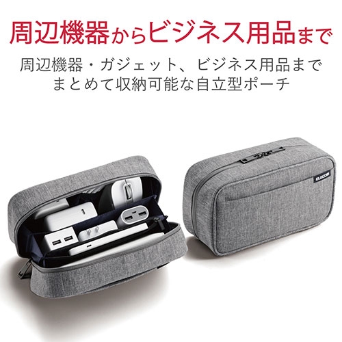 PC周辺機器やケーブルなどをまとめて収納できる自立型ポーチ。