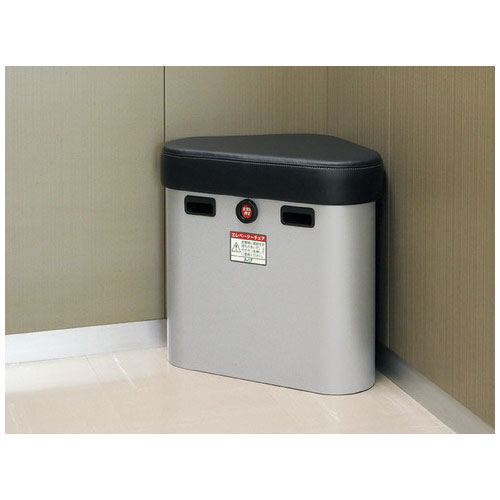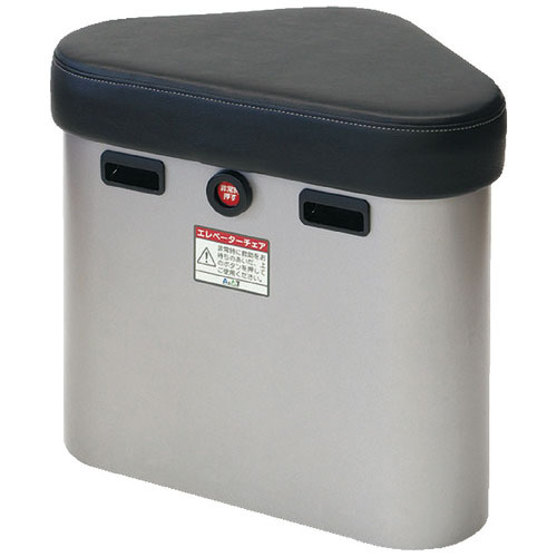 スツール内部に非常用品を収納。地震・停電・故障の時に。普段はエレベーター内の優先席として、また災害や停電、故障によってエレベーター内に閉じ込められてしまった場合には、中に収納されている非常用品を利用して待機することができます。さらに本体は非常用トイレとしても使用できます。