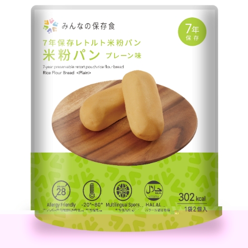 7年保存のレトルト米粉パン。食物アレルギー特定原材料28品目と貝類不使用、ハラール認定取得で食のバリアフリーに。