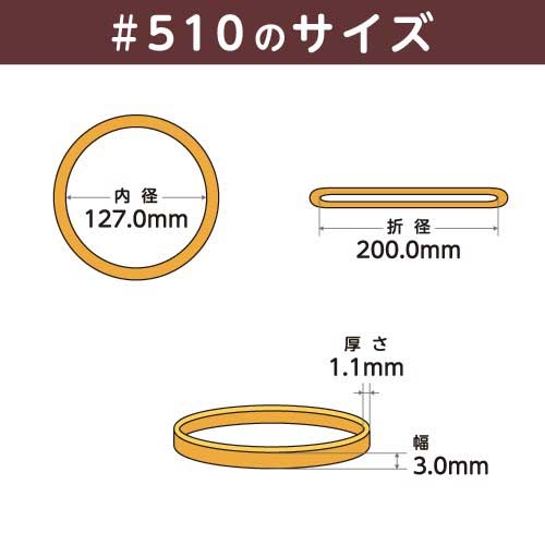 ◆結束、包装、縫製などに広範囲に利用でき、作業性、経済性に優れています。 ◆番手#510のゴムバンド、気軽に使用しやすい少量包装・50g。 ◆少量なので、家庭用やオフィス事務用品、サイズお試し用(試作用)などに。 ◆良質の天然ゴムを使用し、菓子のアメに似た色をしているところから、「アメバンド」もしくは「アメ配合」と呼ばれています。