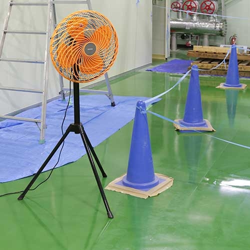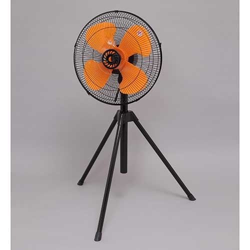 スパイラル形状の前カバーを付けることで強力スポット送風を実現、より遠くへ風を送る工業扇風機 三脚型です。三脚が折りたたみ式で移動や片付けが楽にできます。左右自動首振り機能付きで、風量調節は3段階「強(3)・中(2)・弱(1)」です。