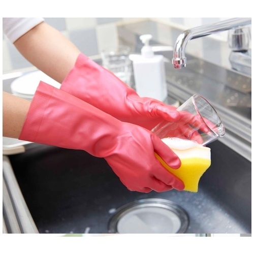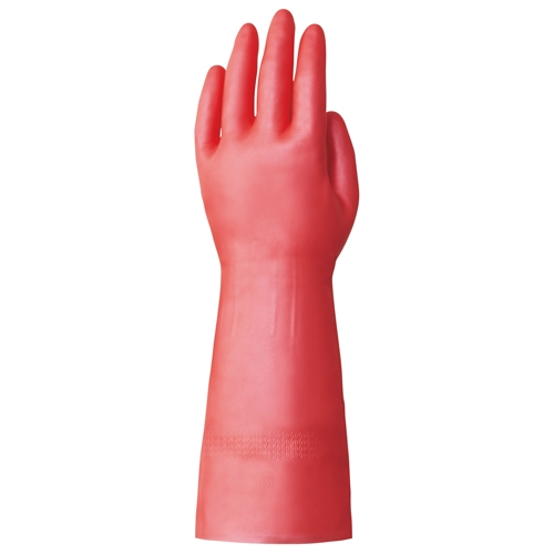 収縮性に優れた柔らか素材!気になるゴムの臭いも軽減。手荒れの原因のひとつのアレルゲンたんぱく質を酵素で分解・精製した素材を使用。表面特殊加工を施し、グリップ性も優れています。