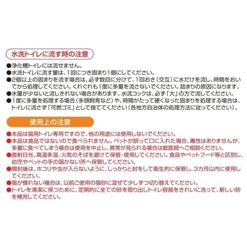 紙、ヒノキ、オカラなど天然素材を利用した猫砂なので、強力消臭!オシッコを吸収した部分がしっかりと固まるので、汚れた部分だけを取り出しやすく後処理が簡単です。
