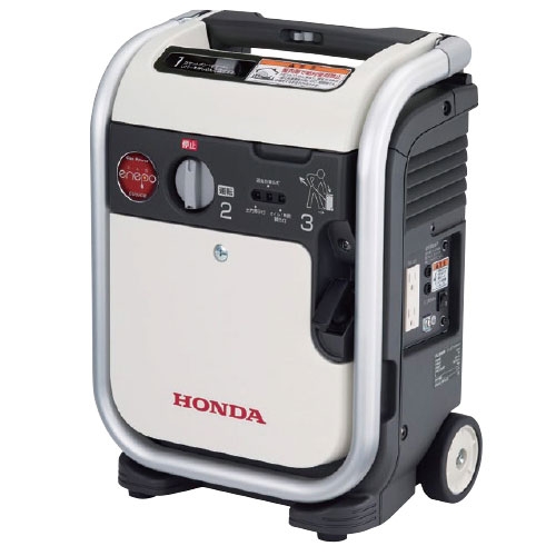カセットボンベで使用できるインバーター発電機。キャリーバッグスタイルで移動もスマート。燃料は、扱いやすく入手しやすいカセットこんろ用のカセットボンベ。ガソリンと比べて劣化に強く長期保管にも適しています。低温下で気化しにくくなるカセットガスでも、Honda 独自の液層から燃料を供給する機構により広い温度範囲での使用が可能です。保管場所など、離れた場所からの移動に心強い折りたたみ式のハンドルと大型車輪を装備。凹凸の少ないスクエア形状。縦型デザインだから狭い場所にも収まりよく収納できます。接続機器の消費電力に合わせてエンジンの回転数を最適に制御することで運転時間を向上させます。