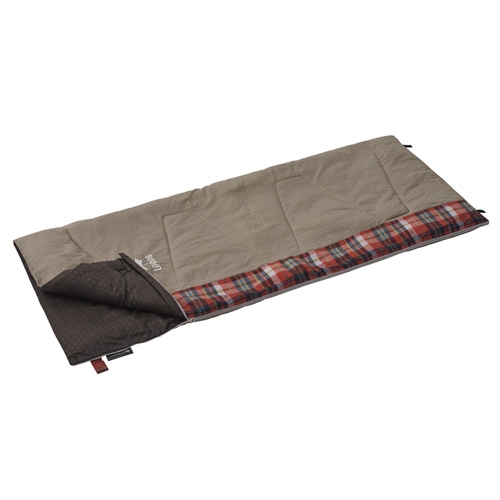 大型洗濯機で丸洗いできる寝袋。同品番の寝袋同士で連結可能(構造上ジッパーエンドは10cm前後ずれます)。ベージュとチェック柄を合わせたシュラフは、約1.8kgと軽量なので、アウトドア時の持ち運びが楽々。適正温度2度まで対応し、表地には撥水加工を施したモイスポリ、中綿には軽くてあたたかなダイナチューブファイバーを使用。親子で添い寝ができるから、真っ暗なキャンプの夜も安心して眠ることができます。小さなお子様を持つ家族に最適です。