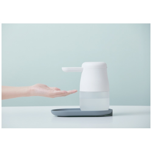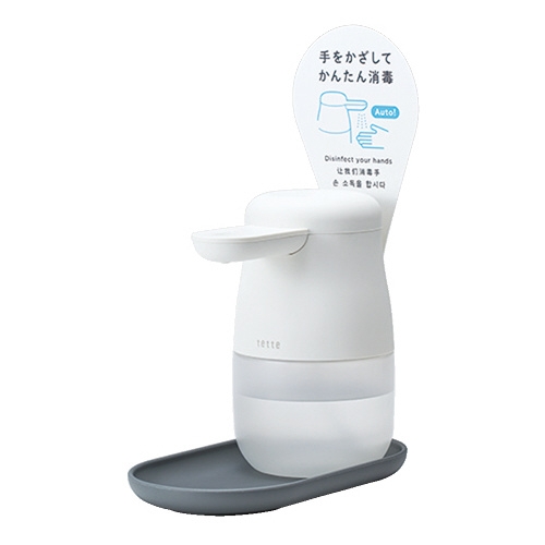 手をかざしてシュッと消毒!様々な場所に馴染むシンプルなデザイン。手をかざすとセンサーが感知し て消毒液が噴射します。